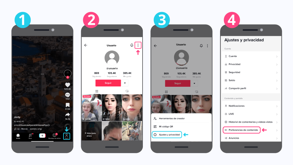 Seguí estos pasos para modificar las preferencias de contenido en TikTok: